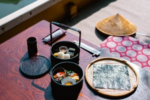川下りをしながら、 お舟の上で料亭の朝ごはんが楽しめる、 特別な体験をご提供いたします。