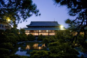 夜のあかりと日本庭園を眺めながら、 眠りにつく。